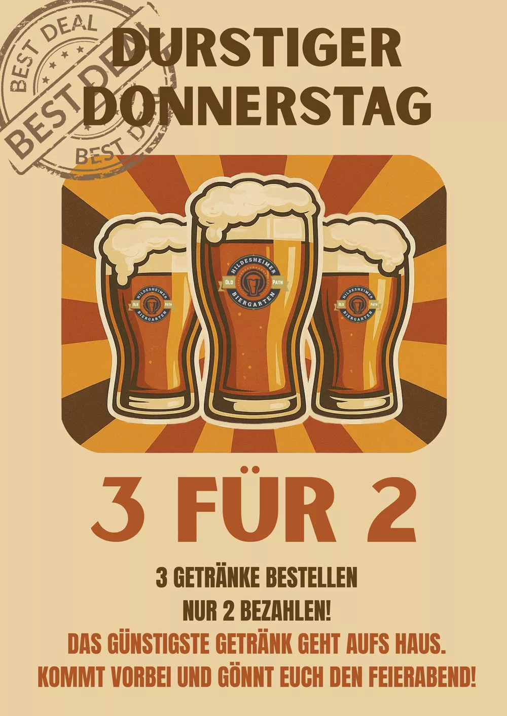 Gegen den großen und kleinen Hunger ist unsere Speisekarte das beste Mittel! Jedes Gericht für euch frisch zubereitet. Immer! Mitten im Grünen. Mitten bei uns in Hildesheim. Kommt vorbei!