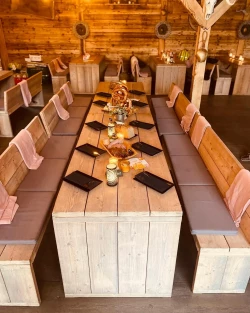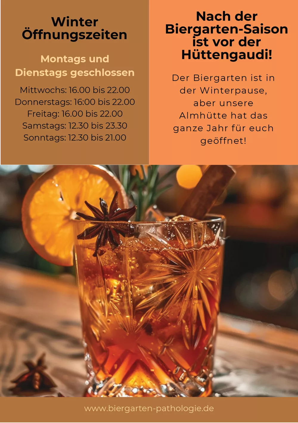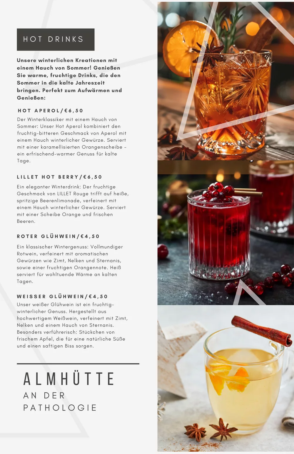 Wir haben Platz für euch – ganz gleich ob ihr euch in unsere warme Almhütte an der alten Pathologie kuscheln wollt oder die Sonne euch im Biergarten – bei schönem Wetter – an der Nase kitzeln soll. Gemütliche Bänke, Tische, Liegestühle, rustikale Loungemöbel und warme Decken haben wir genug.