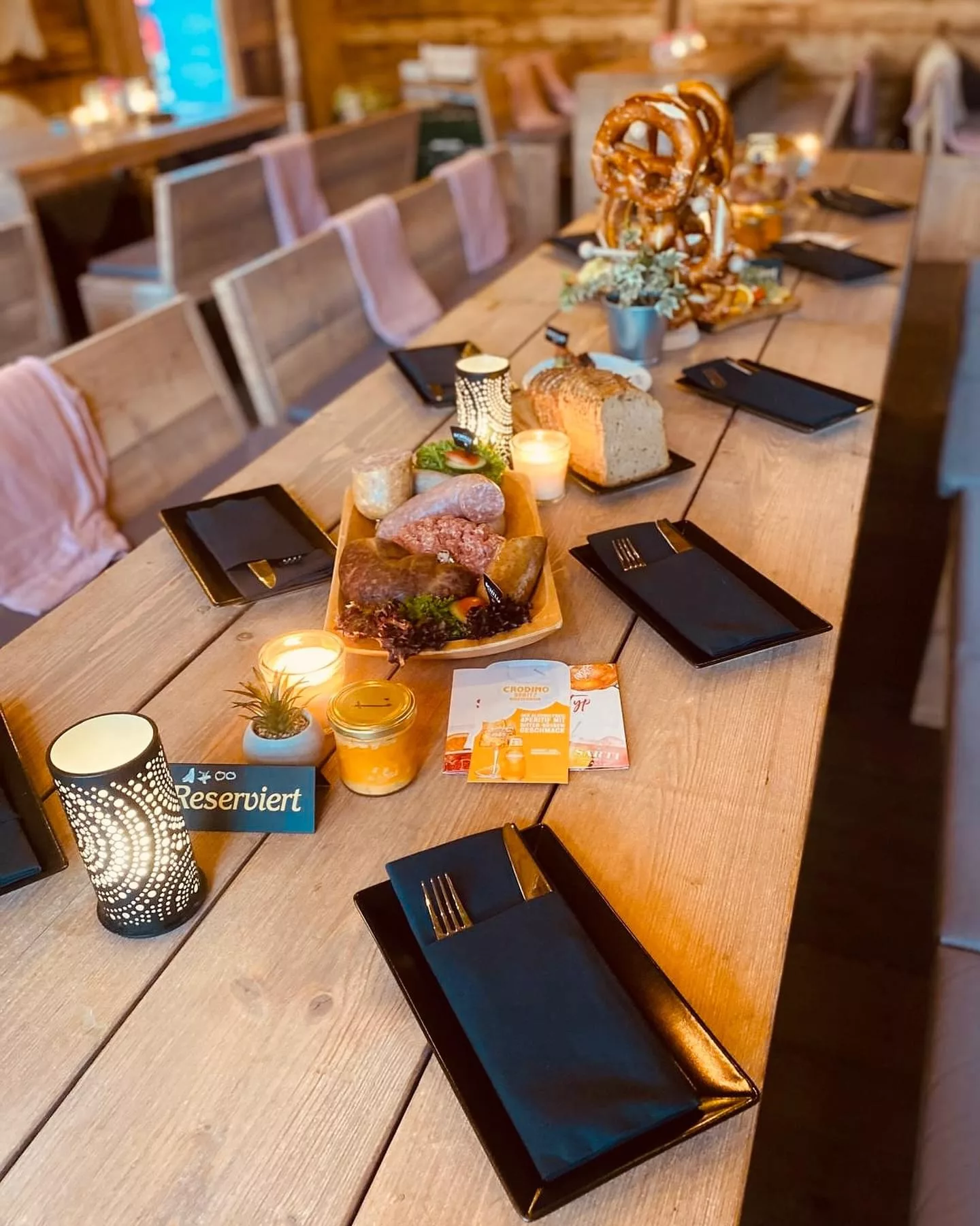 Wir haben Platz für euch – ganz gleich ob ihr euch in unsere warme Almhütte an der alten Pathologie kuscheln wollt oder die Sonne euch im Biergarten – bei schönem Wetter – an der Nase kitzeln soll. Gemütliche Bänke, Tische, Liegestühle, rustikale Loungemöbel und warme Decken haben wir genug.