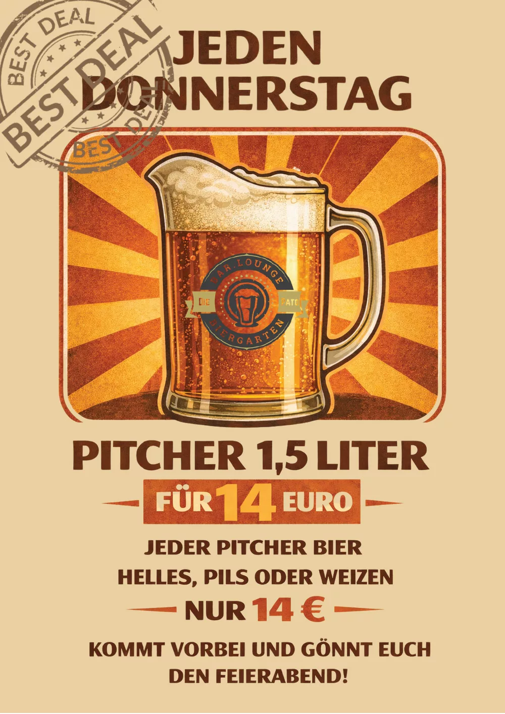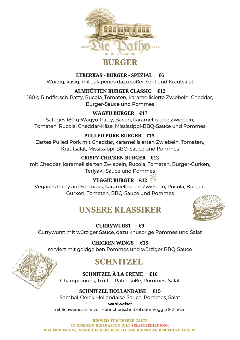 Wir haben Platz für euch – ganz gleich ob ihr euch an kühleren Tagen in unsere gemütliche Almhütte an der alten Pathologie kuscheln wollt oder die Sonne euch im Biergarten – bei schönem Wetter – an der Nase kitzeln soll. Gemütliche Bänke, Tische, Liegestühle, rustikale Loungemöbel und warme Decken haben wir genug.